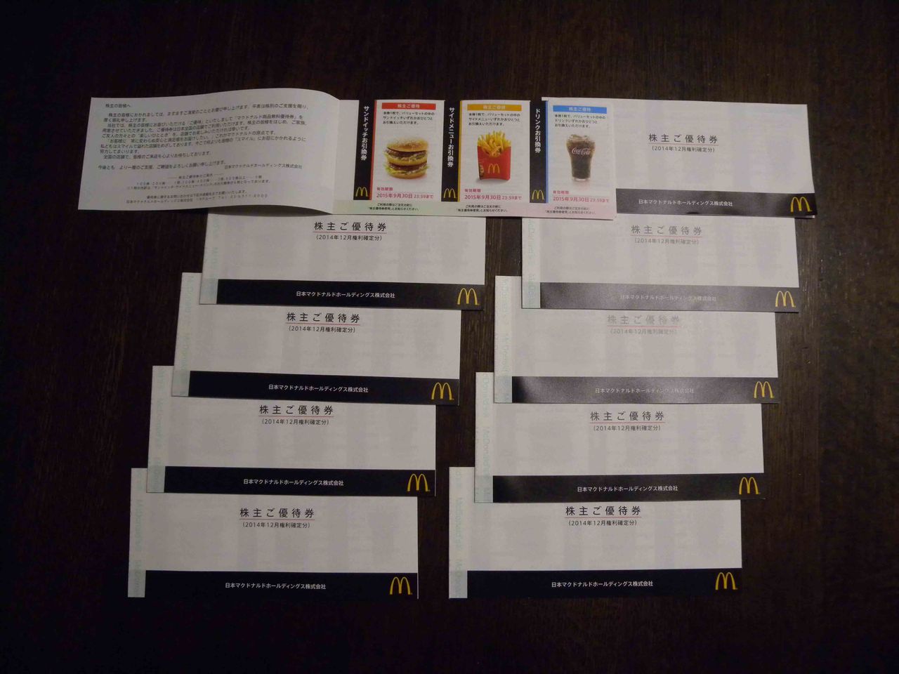 3.27に日本マクドナルドホールディングスの株主優待券が10冊届きました!
