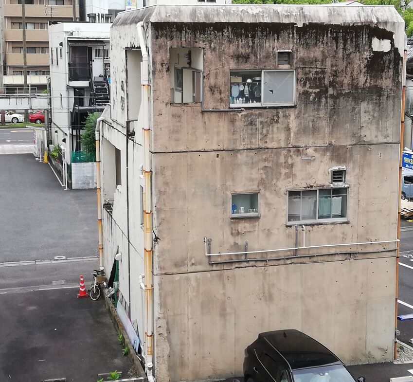 別物件に宿泊した際に窓の外を見ると、とても古いたたずまいの築古RCが飛び込んできました。10名中9名は嫌悪するであろうボロさです。