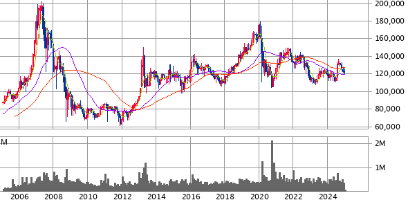 まずはJ-REITの代表銘柄、日本ビルファンド(8951)です。20年チャートでみると、2008年ほどではないものの、2020年のコロナショックに近い株価です。これは期待できる!