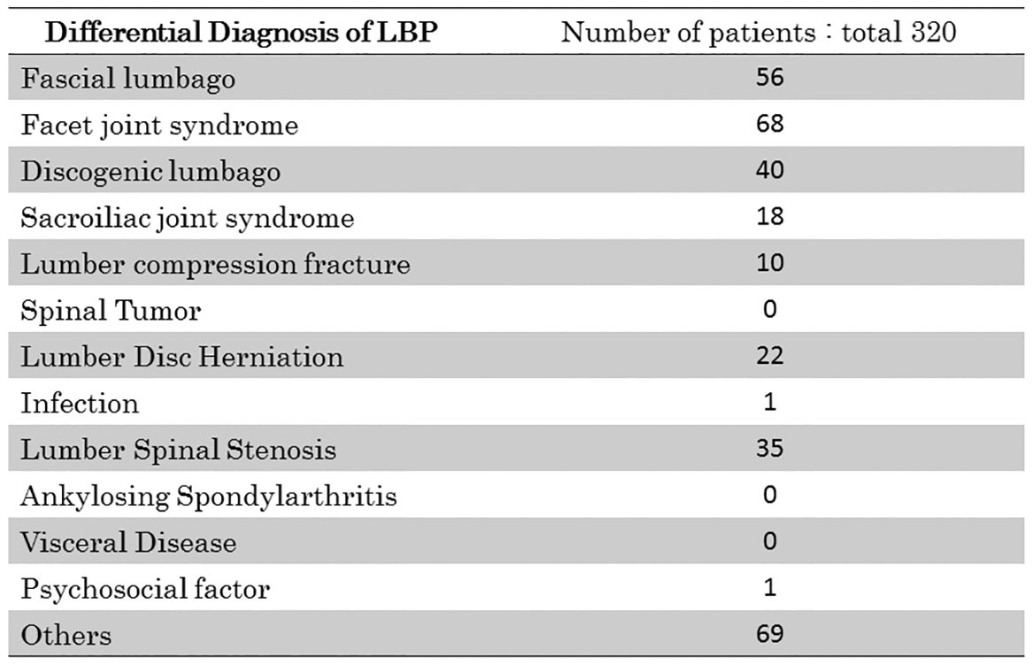 では、腰痛の原因の内訳はどのようになっているのでしょうか? 論文によると、腰痛の原因は下記の表のごとくです。